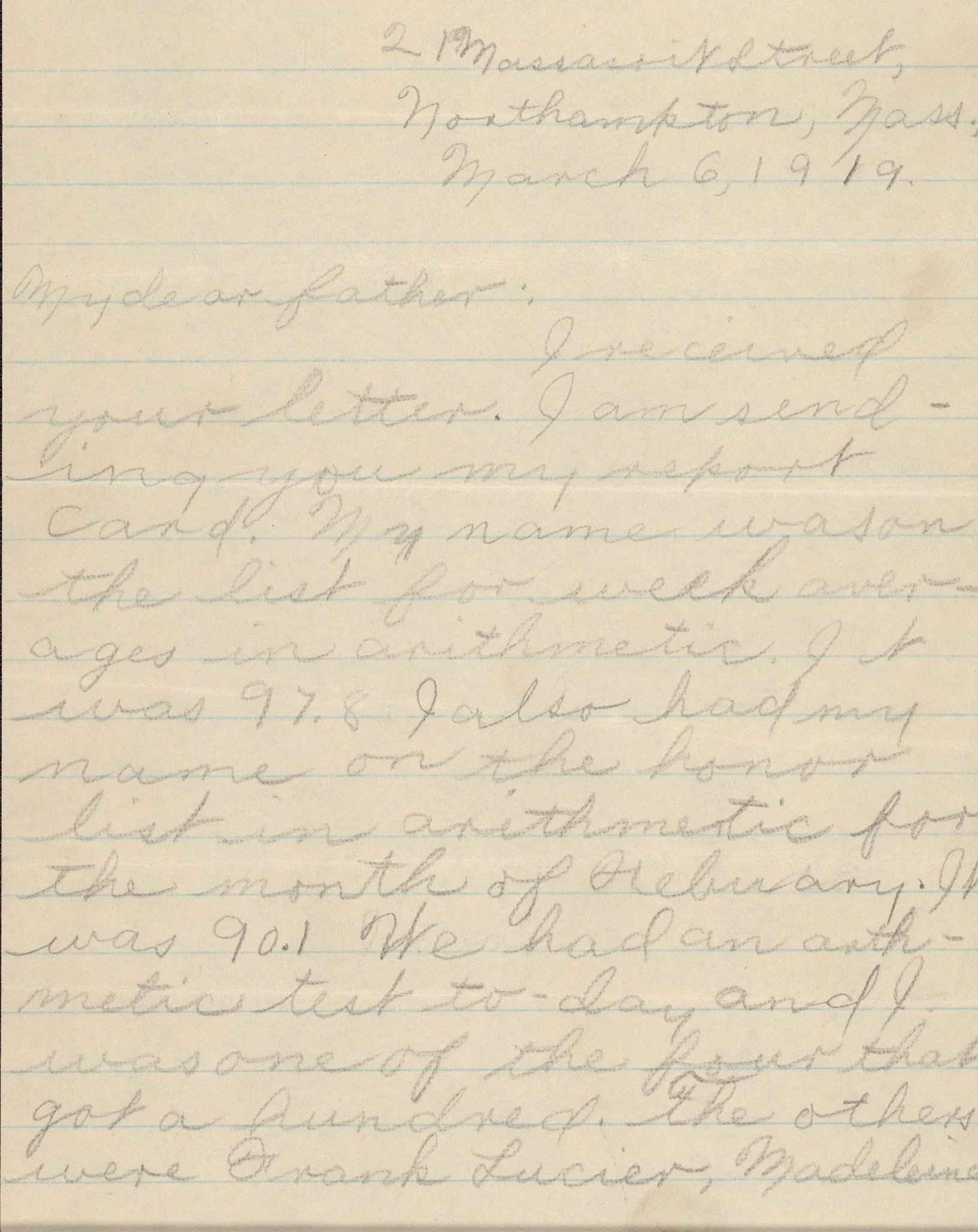 John Coolidge writing to his father, Governor Calvin Coolidge: March 6, 1919.