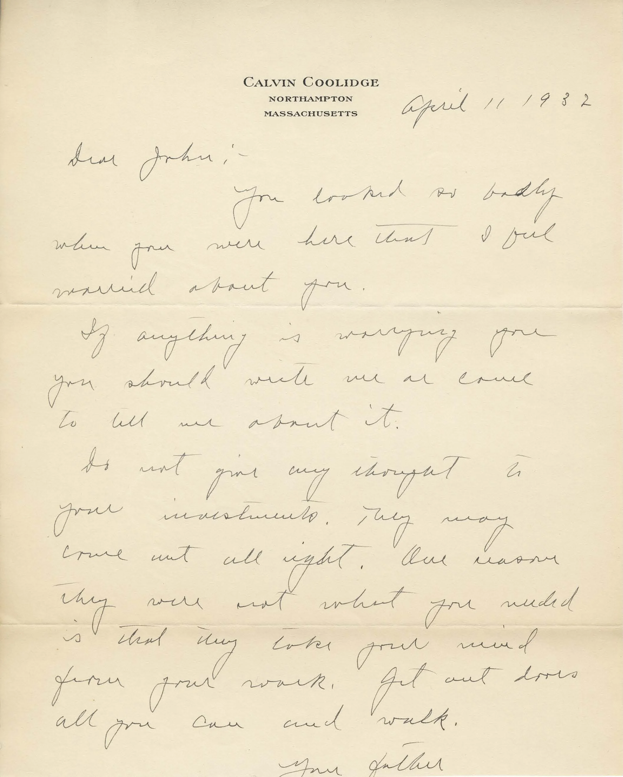 Calvin Coolidge writing his son, John: April 11, 1932.