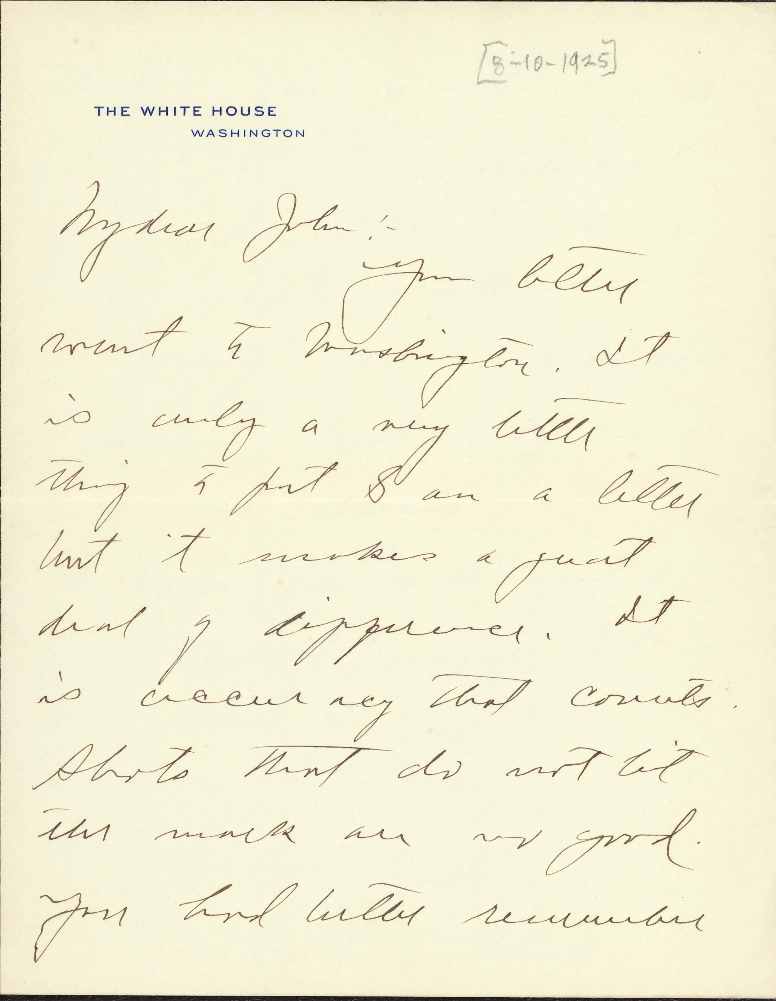 Calvin Coolidge writing his son, John: August 10, 1925.