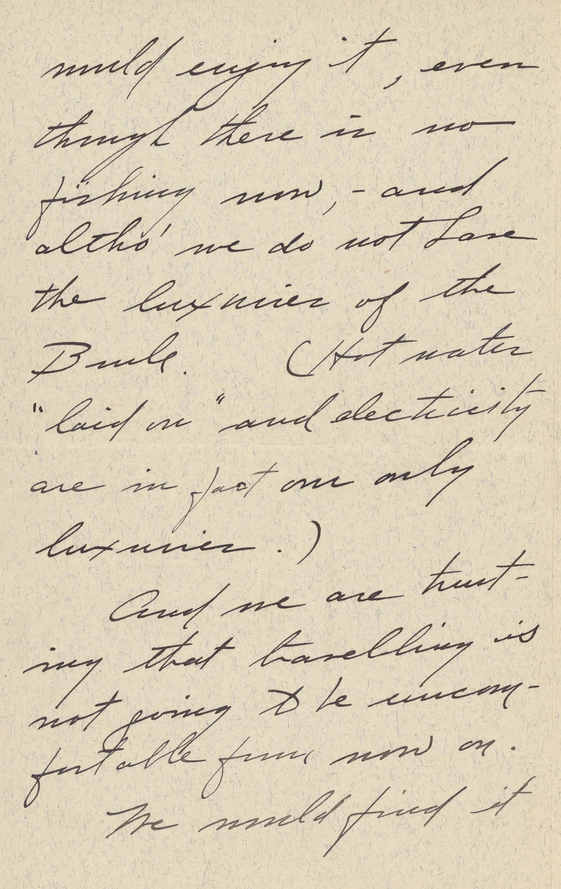 In the letter, Lou Hoover invites the Coolidges to come for a visit to Camp Rapidan. She says that the Hoovers “imagine you would really enjoy it, even though there is no fishing now—and altho’ we do not have the luxuries of the Brule. (Hot water “laid on” and electricity are in fact the only luxuries).” The Brule refers to Coolidge’s 1928 Summer White House on the Brule River in Wisconsin. The lodge on Cedar Island where the Coolidges stayed had been the property of Henry Clay Pierce, and Coolidge spent many an afternoon fishing its nearby lakes and rivers.