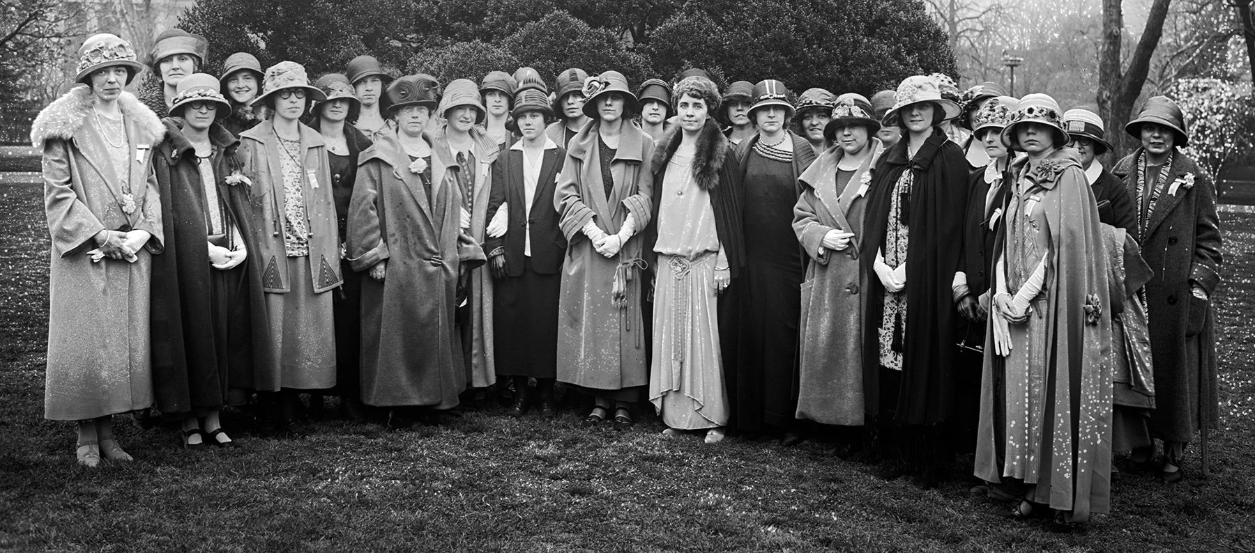 Grace Coolidge (center, without hat) hosts fellow Pi Beta Phi members at the White House
