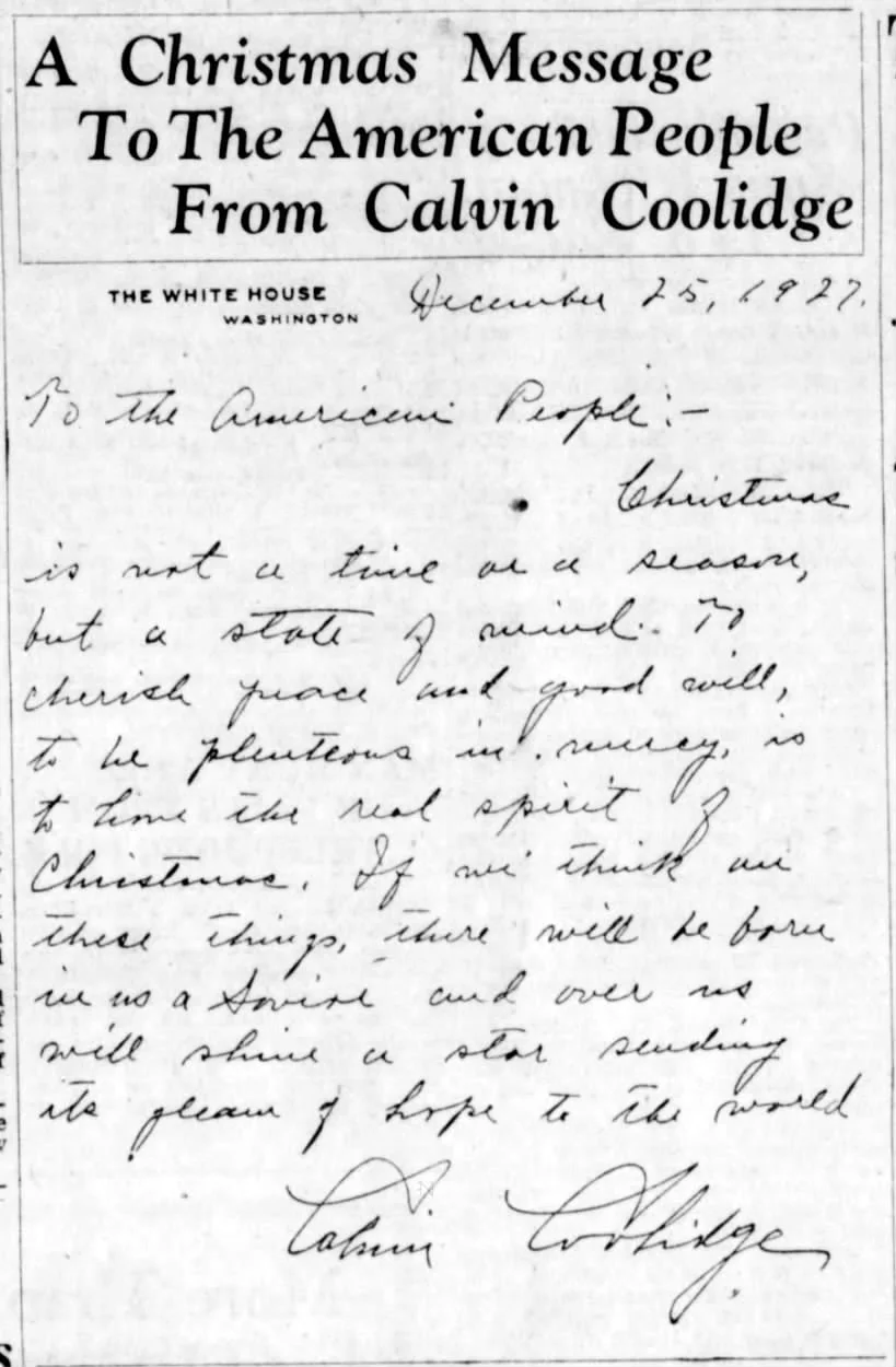 President Coolidge’s 1927 Christmas message, the first such official presidential message